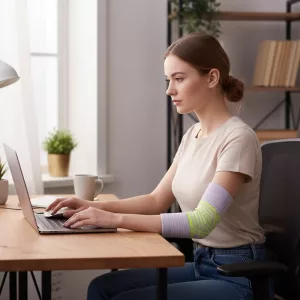 Uso esta cotoveleira todos os dias no trabalho digitando. Às vezes até esqueço que estou usando porque é leve e não deixa marcas. Meu cotovelo está muito melhor agora.