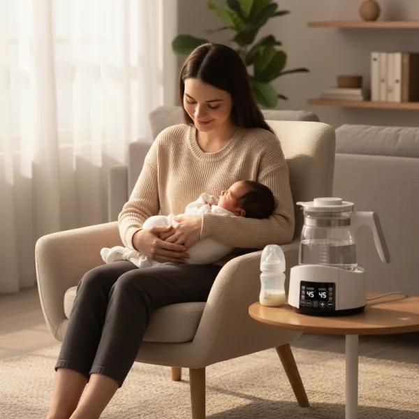 O aquecedor de mamadeira me permite preparar as mamadas rapidamente, especialmente quando meu bebê chora à noite. Não há mais momentos estressantes com mamadeira.