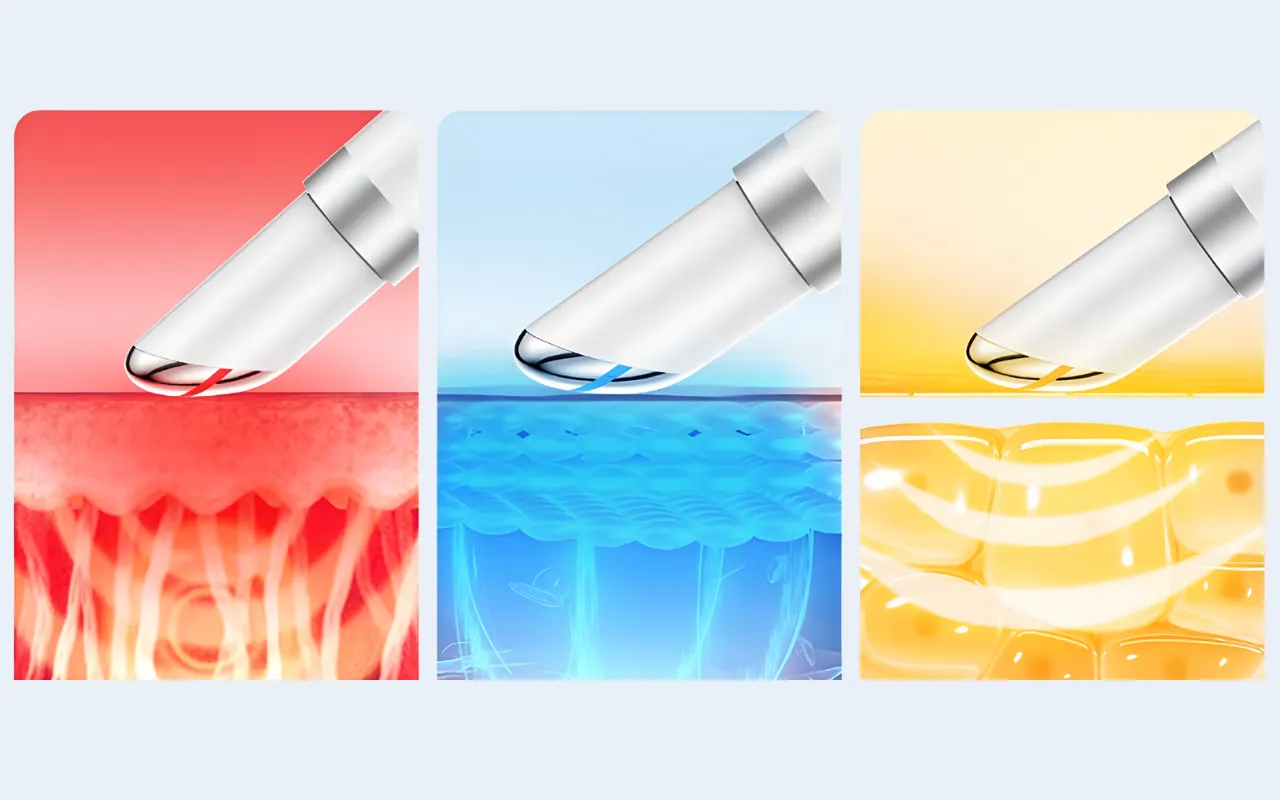 Este dispositivo inovador promete um cuidado completo com a pele. Ele combina EMS, calor e fototerapia para ativar a reparação e regeneração celular.