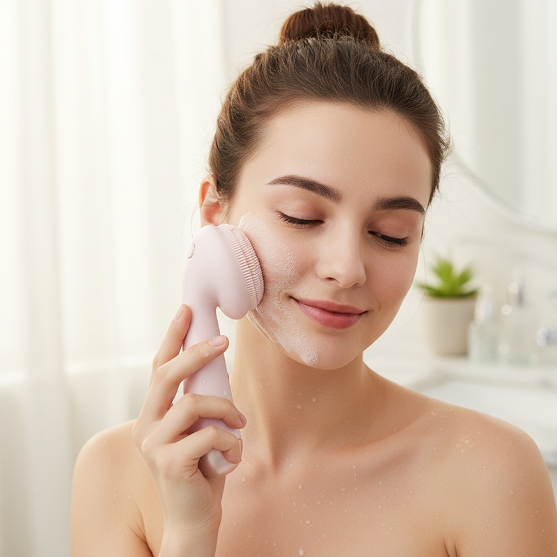 As cerdas de silicone limpam sem machucar minha pele sensível. Gosto que tem configurações diferentes, então posso usar de dia ou à noite.