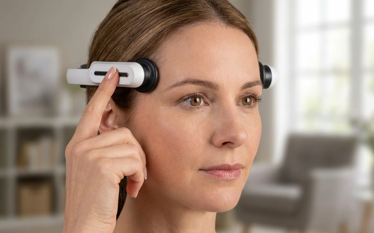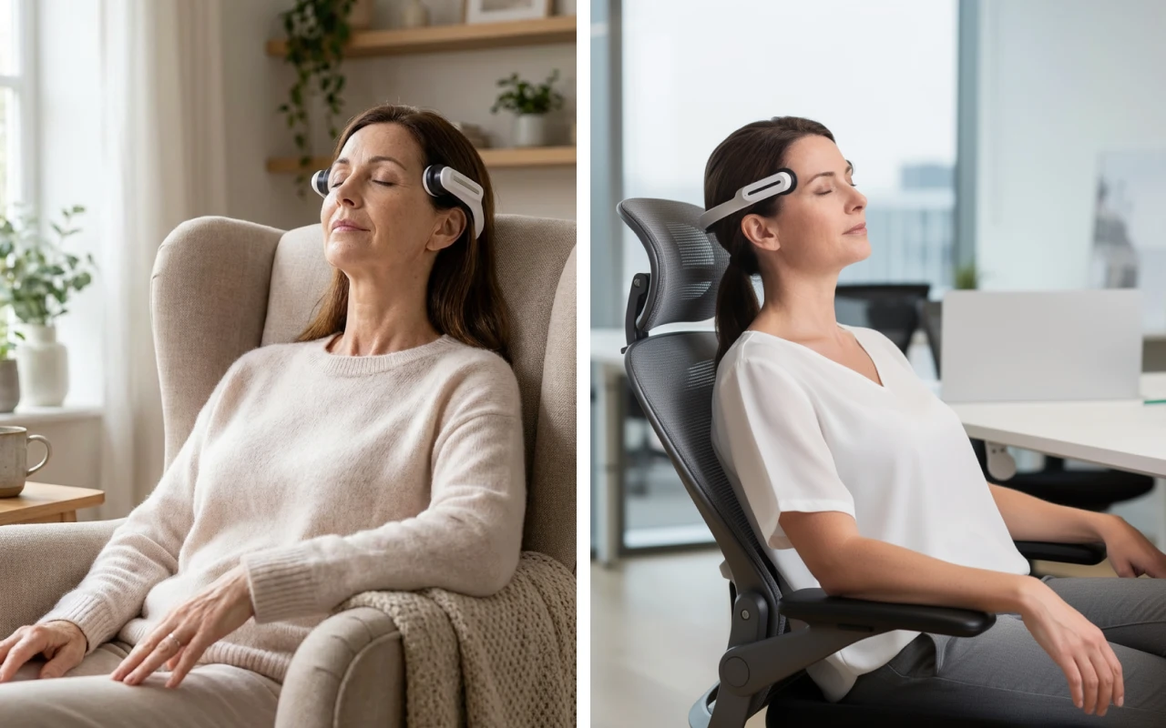 Use o massageador de têmpora Ortorex em qualquer lugar, em casa ou no escritório. O design leve permite que você leve alívio onde for.
