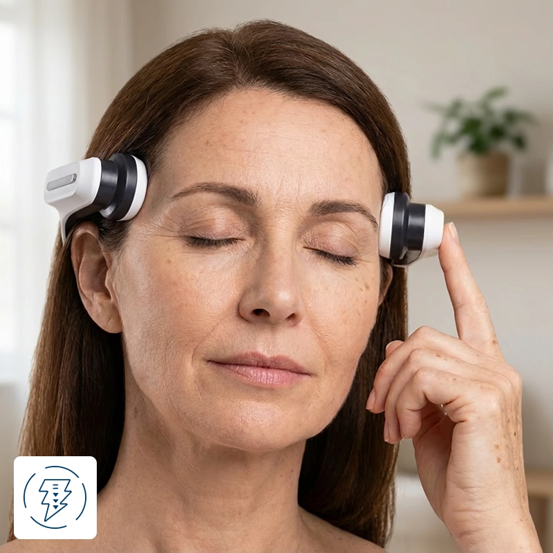 Use o massageador de têmpora Ortorex em qualquer lugar, em casa ou no escritório. O design leve permite que você leve alívio onde for.