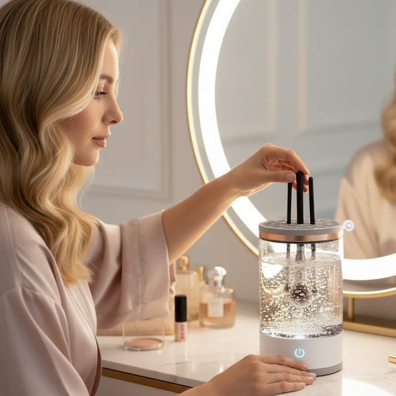 Limpar meus pincéis com este aparelho é realmente divertido! Eles ficam impecáveis toda vez. Meus rosto até parece menos irritado ultimamente.