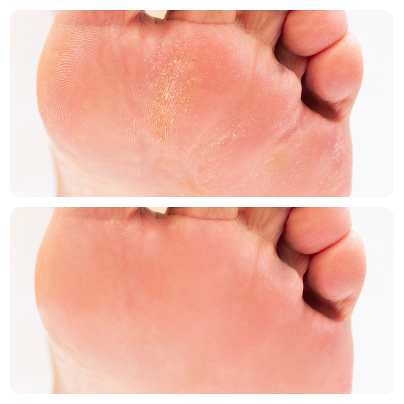 Usei o removedor nos calcanhares rachados e percebi a diferença na hora. Minhas meias não agarram mais, o que é ótimo.