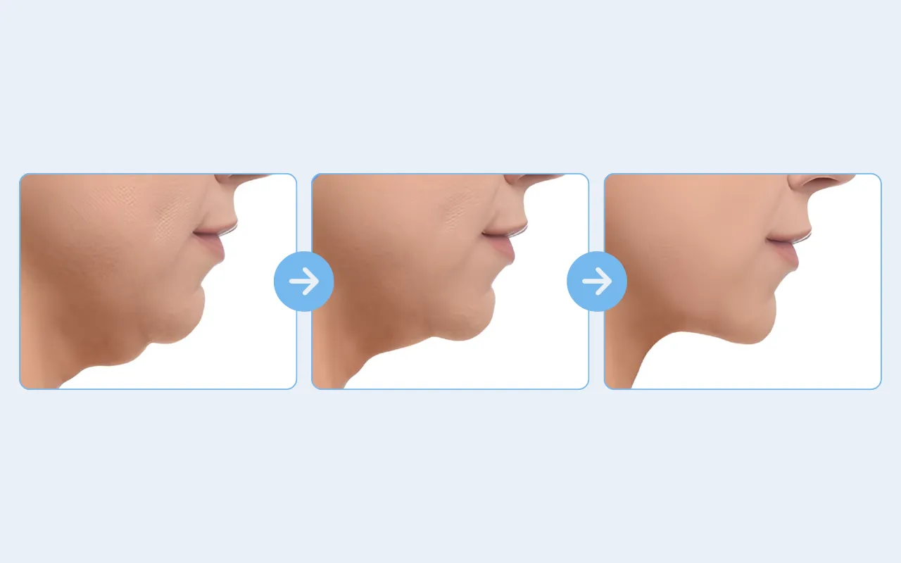 Estímulos suaves atuam em áreas flácidas para um contorno definido. Note um perfil mais magro após sessões diárias consistentes.
