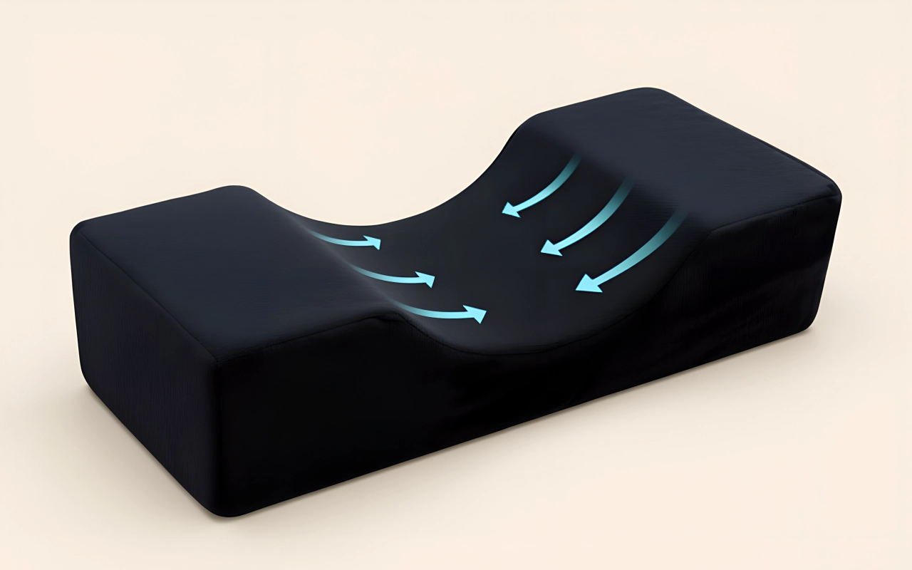 O formato côncavo exclusivo segue a curva natural do seu pescoço. Esse design reduz a dor e mantém sua cabeça na posição correta.