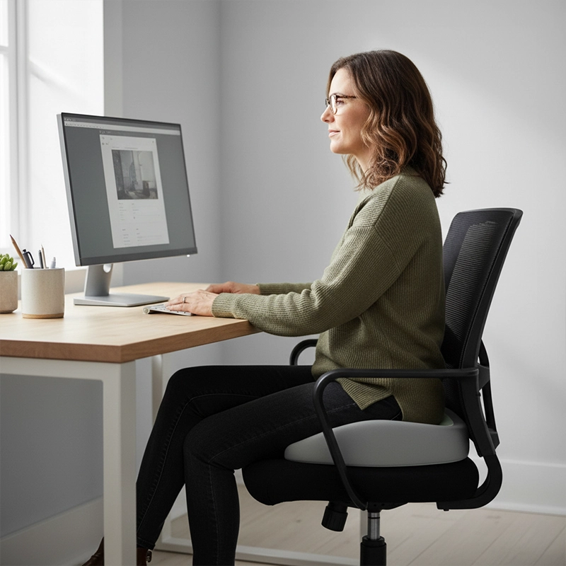 A dor de assentos duros pode tornar o dia difícil. Este suporte reduz o desconforto, para que você possa focar no que importa.