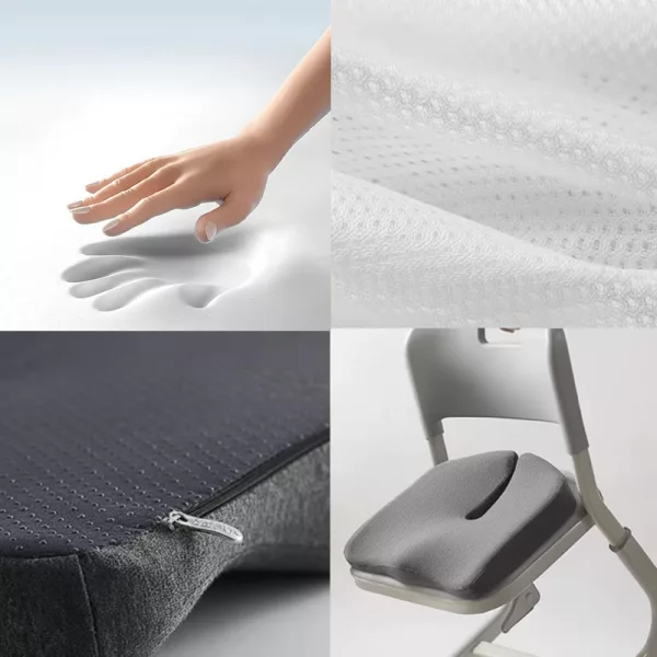 O design em espuma de memória direcionada alivia rapidamente e suavemente as dores. Sentar volta a ser prazeroso enquanto a tensão desaparece.