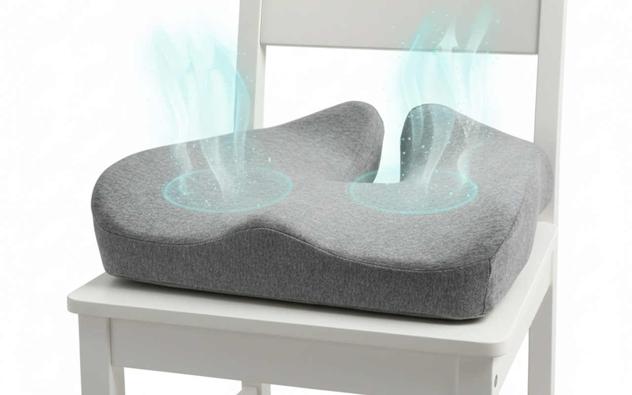 Minha cadeira de escritório parece nova com essa almofada. Minha postura melhorou muito, e ela fica fresca o dia todo. Não fico mais me mexendo nem suada.