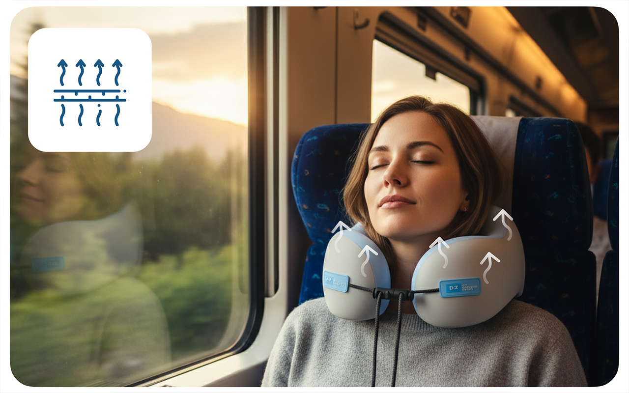 Viagens longas costumam causar ombros doloridos, costas rígidas e mente cansada. O travesseiro Ortorex apoia suavemente sua cabeça e postura. Cada viagem parece mais curta e muito mais agradável para todos. Relaxe com facilidade, sabendo que conforto e saúde estão sempre ao seu alcance.