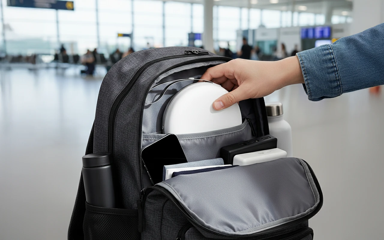Cabe dentro de um estojo pequeno, economizando espaço precioso na bagagem. Leve para qualquer lugar, de aviões a viagens de carro, sem complicações.