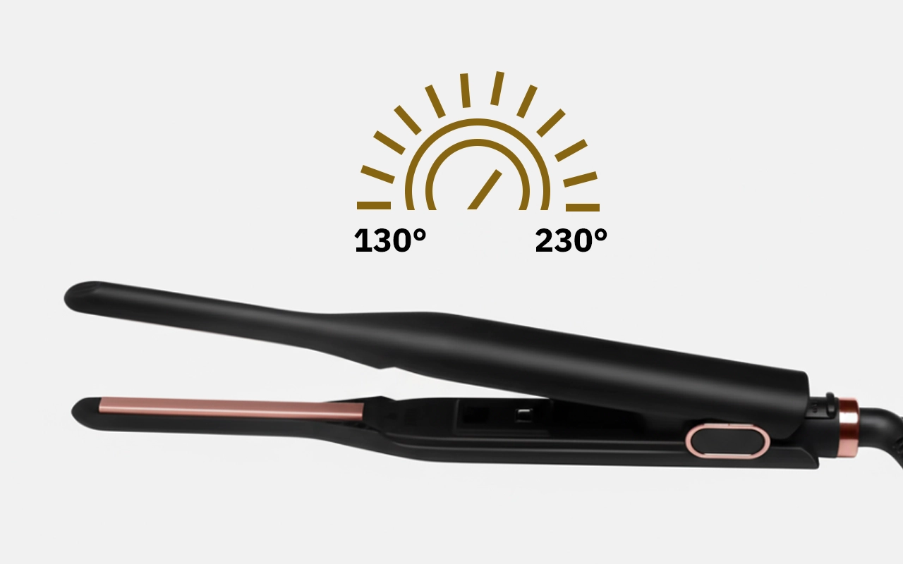 Ajuste facilmente a temperatura para diversos estilos. As placas finas permitem alcançar a raiz, proporcionando um acabamento impecável.