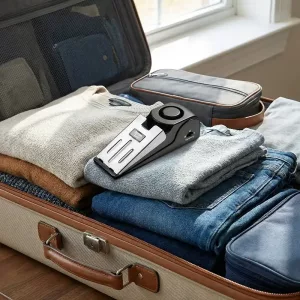 Forma compacta que cabe facilmente em bolsas ou malas. Leve segurança para hotéis, apartamentos ou qualquer lugar temporário rapidamente.