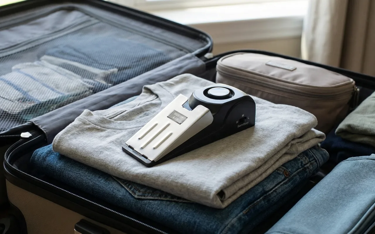 Forma compacta que cabe facilmente em bolsas ou malas. Leve segurança para hotéis, apartamentos ou qualquer lugar temporário rapidamente.