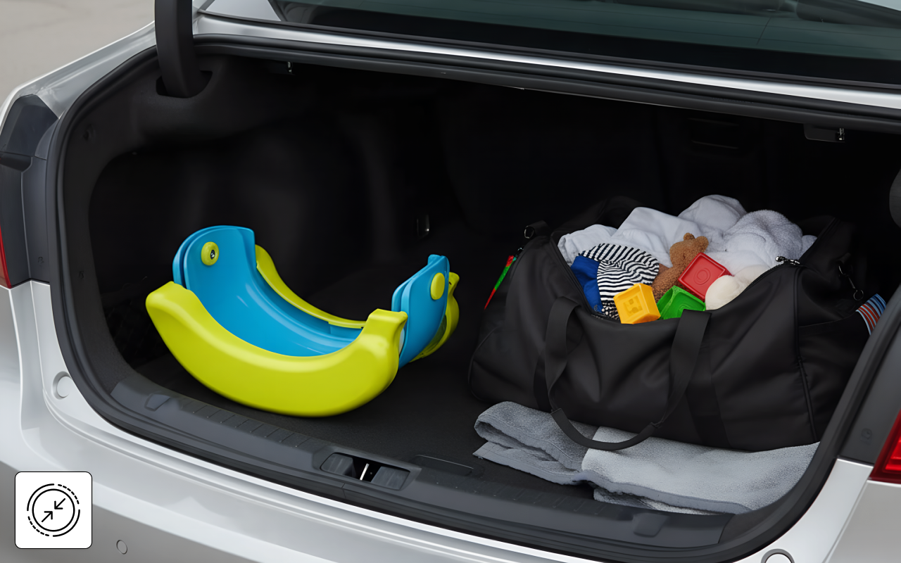 É leve e cabe na minha bolsa de fraldas. Sempre que visitamos parentes, só tiramos o assento e evitamos preocupações.