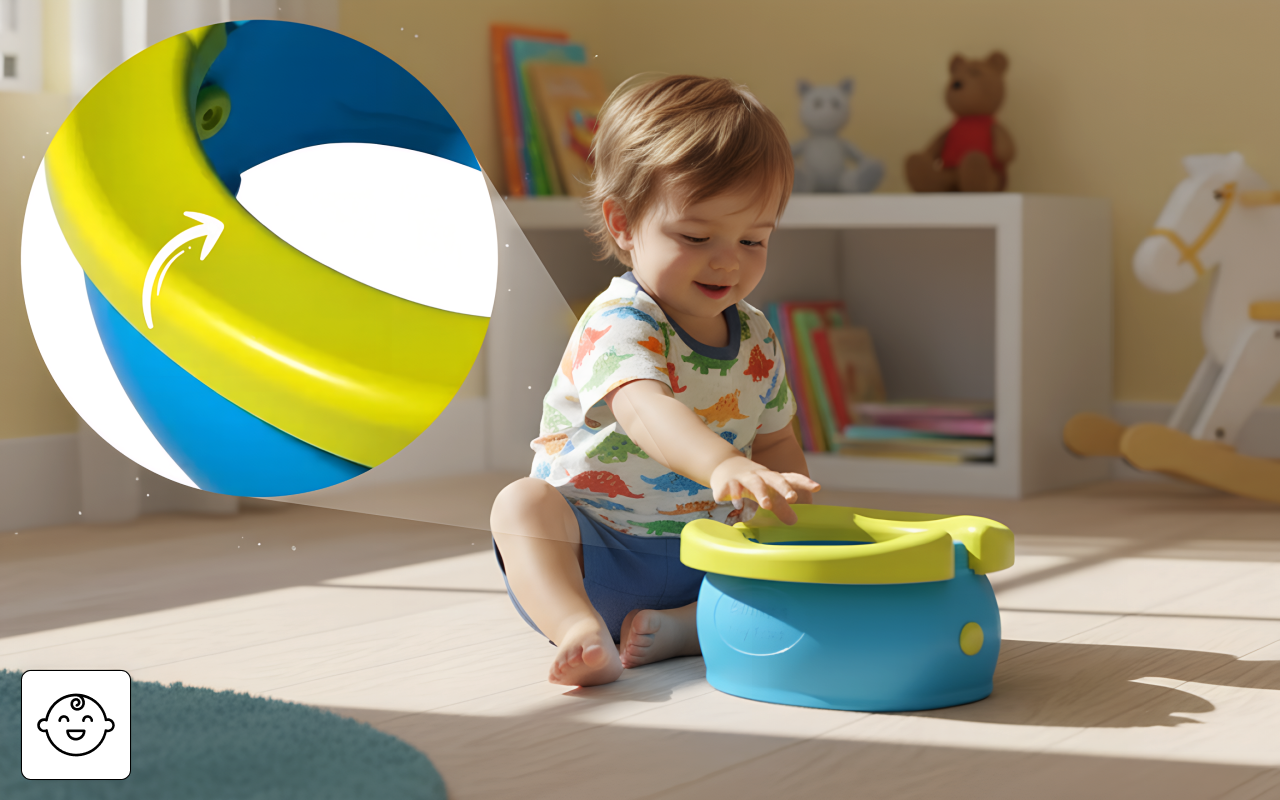 Cores vibrantes e bordas suaves fazem as crianças se sentirem seguras. A hora do troninho fica menos estressante para os pequenos aprendizes.