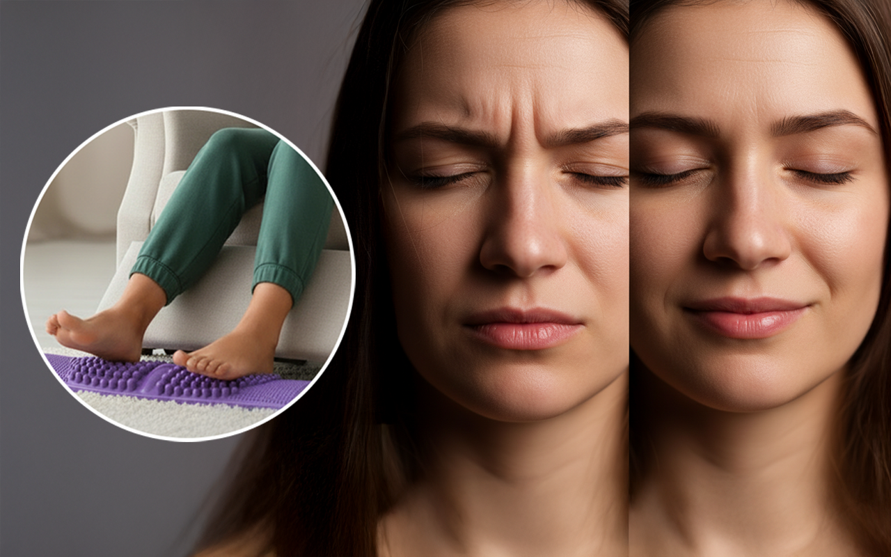 A acupressão suave ajuda a relaxar sua mente e corpo naturalmente. A tensão desaparece enquanto você aproveita um momento de tranquilidade.