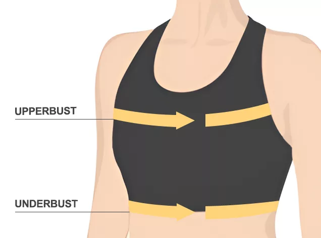 - 2. Para medir o busto superior, envolva a fita métrica ao redor do tórax, logo abaixo das axilas e sobre a parte superior do busto.