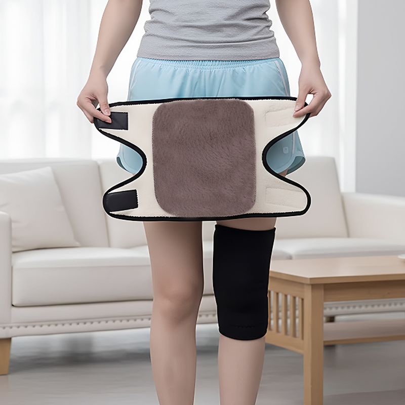 A faixa de pelúcia esquenta na hora e ajuda meus joelhos nas manhãs frias. Muito bom não precisar de fios ou tomadas.