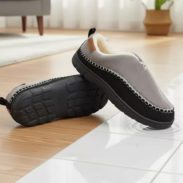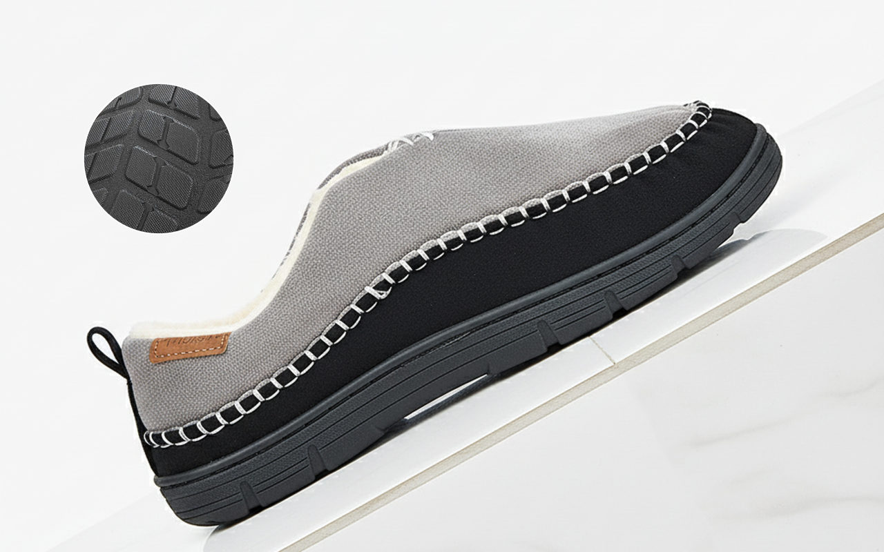 A sola texturizada ajuda a evitar escorregões em superfícies lisas. Caminhe com confiança em azulejos, madeira ou qualquer espaço interno.