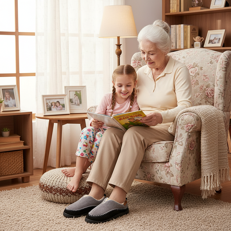Eu adoro meus chinelos de memória! Meus pés ficam tão aconchegantes e apoiados a noite toda. O interior é super macio e nunca fica frio, mesmo no inverno.