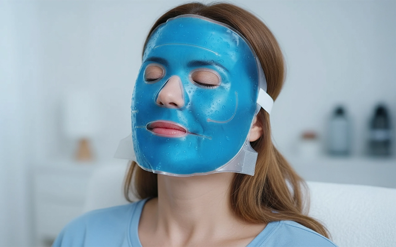 A máscara fria salvou minha pele depois de uma queimadura de sol. Ajustou perfeitamente e foi suave nas minhas bochechas e testa.