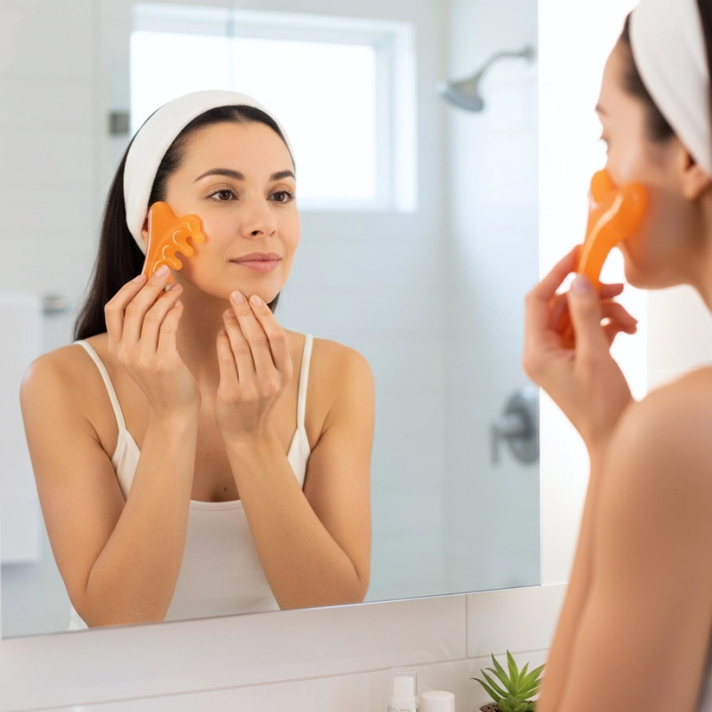 Produtos de beleza penetram mais profundamente com o uso do Ortorex Gua Sha. Cremes e séruns apresentam melhores resultados a cada aplicação.