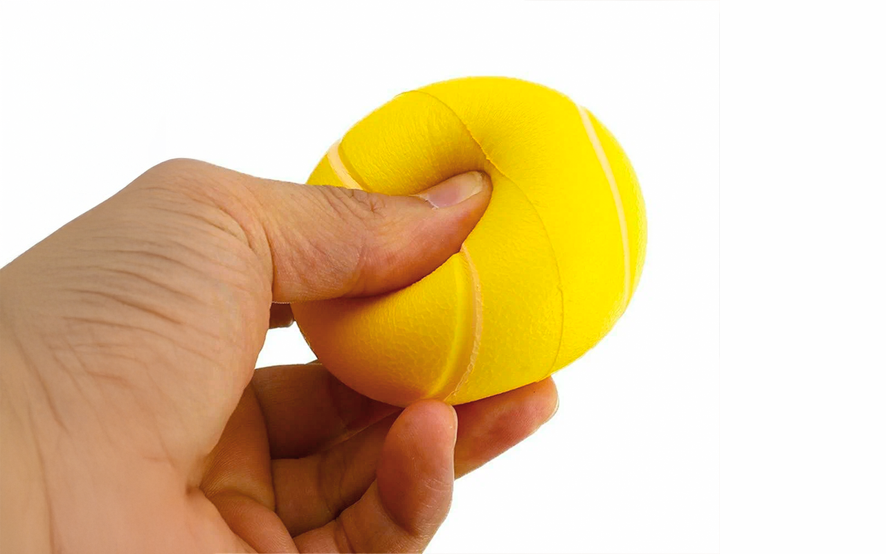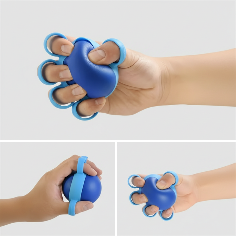 O material macio e elástico evita pressão ou escorregões. O design com alça para os dedos garante que a bola permaneça firme no lugar.