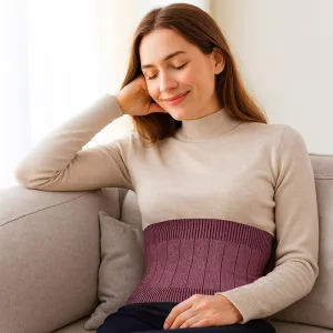 Usar isso ajuda nas dores de barriga. É elástica e não coça minha pele, além de ser fina o suficiente para usar por baixo do jeans.