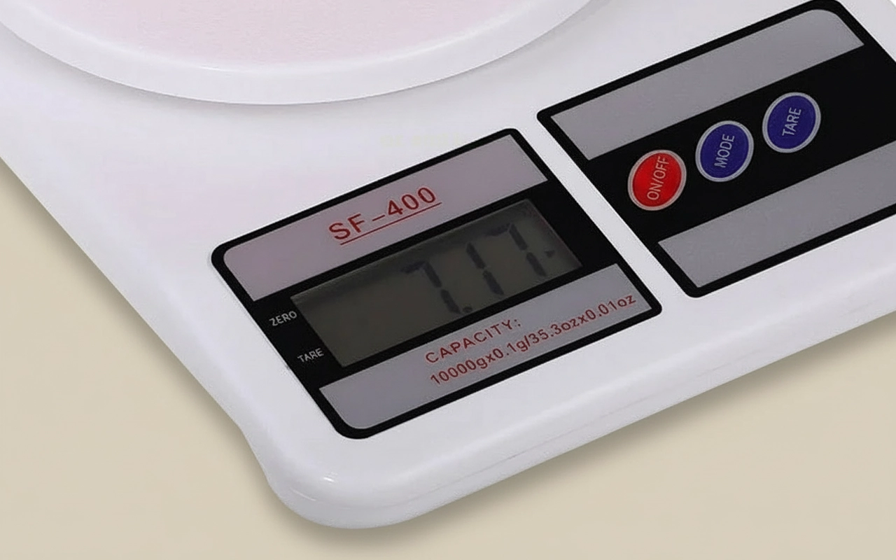 Esta balança possui uma tela LCD, assim você pode usá-la até mesmo em pouca luz. Vai tornar o seu processo de cozinhar sem complicações a qualquer momento!