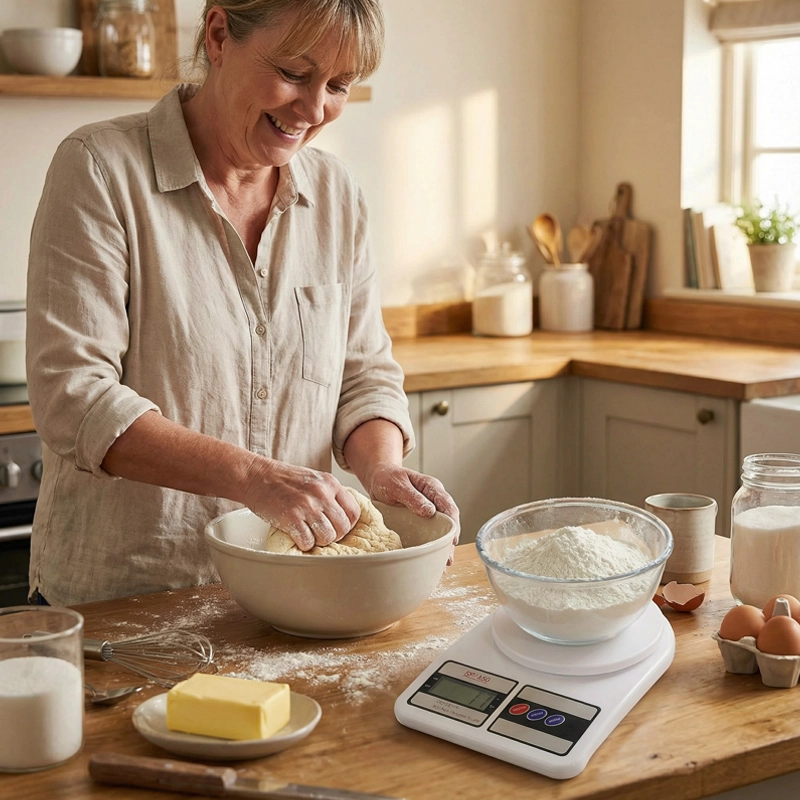 Fazer bolos ficou muito mais fácil agora! Esta balança é super precisa, e adoro poder alternar entre onças e gramas. Até meus filhos ajudam.