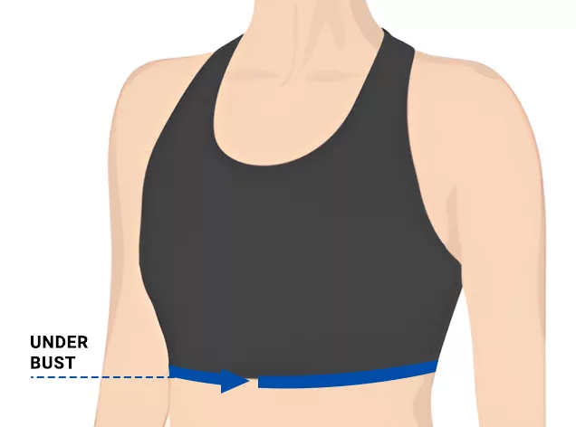 - 2. Para encontrar a medida abaixo do busto, envolva a fita métrica ao redor do seu tórax, diretamente e uniformemente sob o busto.