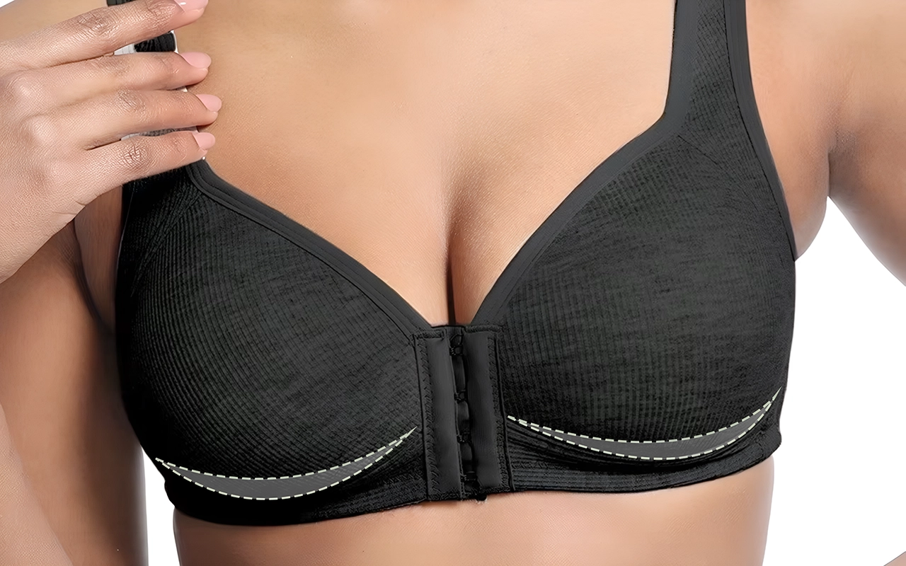 Fechos frontais seguros economizam tempo ao vestir-se todos os dias. Evite torções dolorosas ou presilhas difíceis de alcançar.