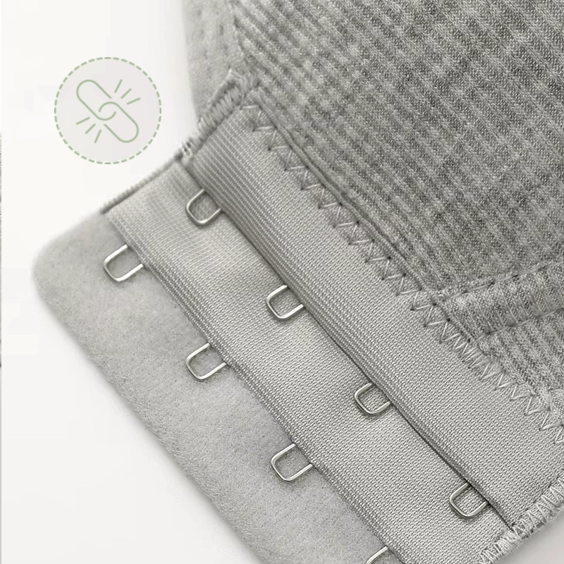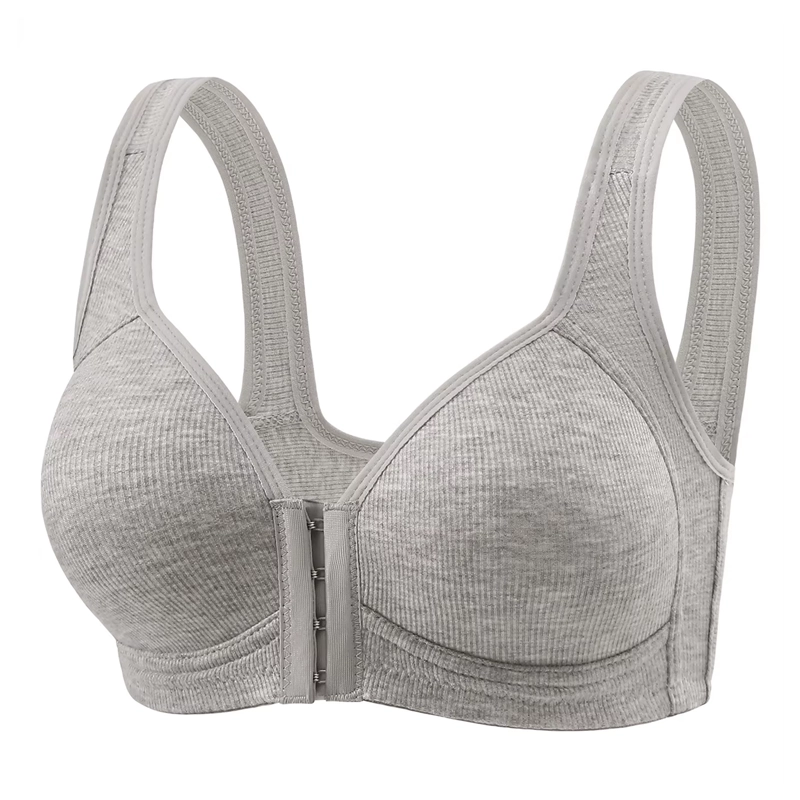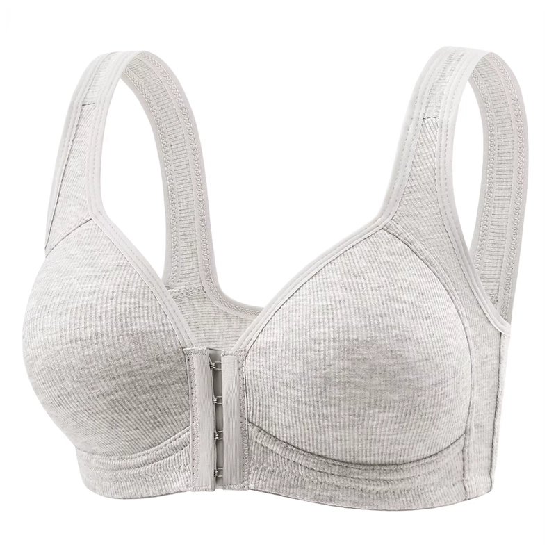 Fechos frontais seguros economizam tempo ao vestir-se todos os dias. Evite torções dolorosas ou presilhas difíceis de alcançar.