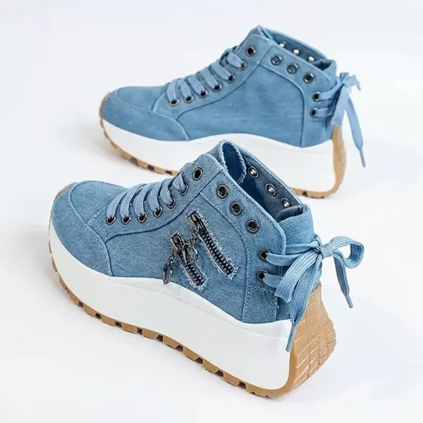 A cor azul jeans é linda! Gosto muito de como o design se destaca dos outros tênis que tenho.