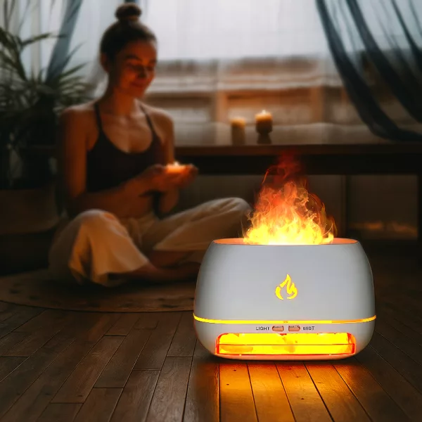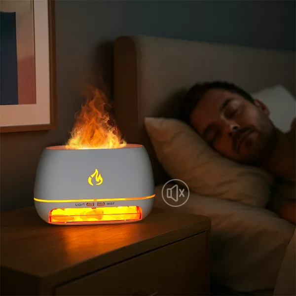 O efeito de chama é tão bonito no escuro. Eu uso óleos calmantes nele e agora sempre durmo como um bebê.