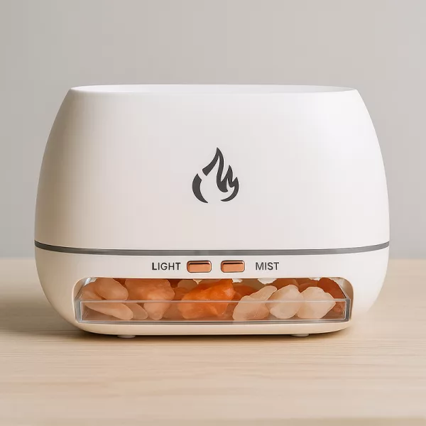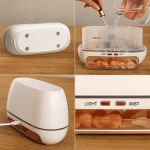 Minha família percebe uma grande melhora no ar seco quando usamos isso. Os cristais de sal são um toque legal e não faz barulho algum.
