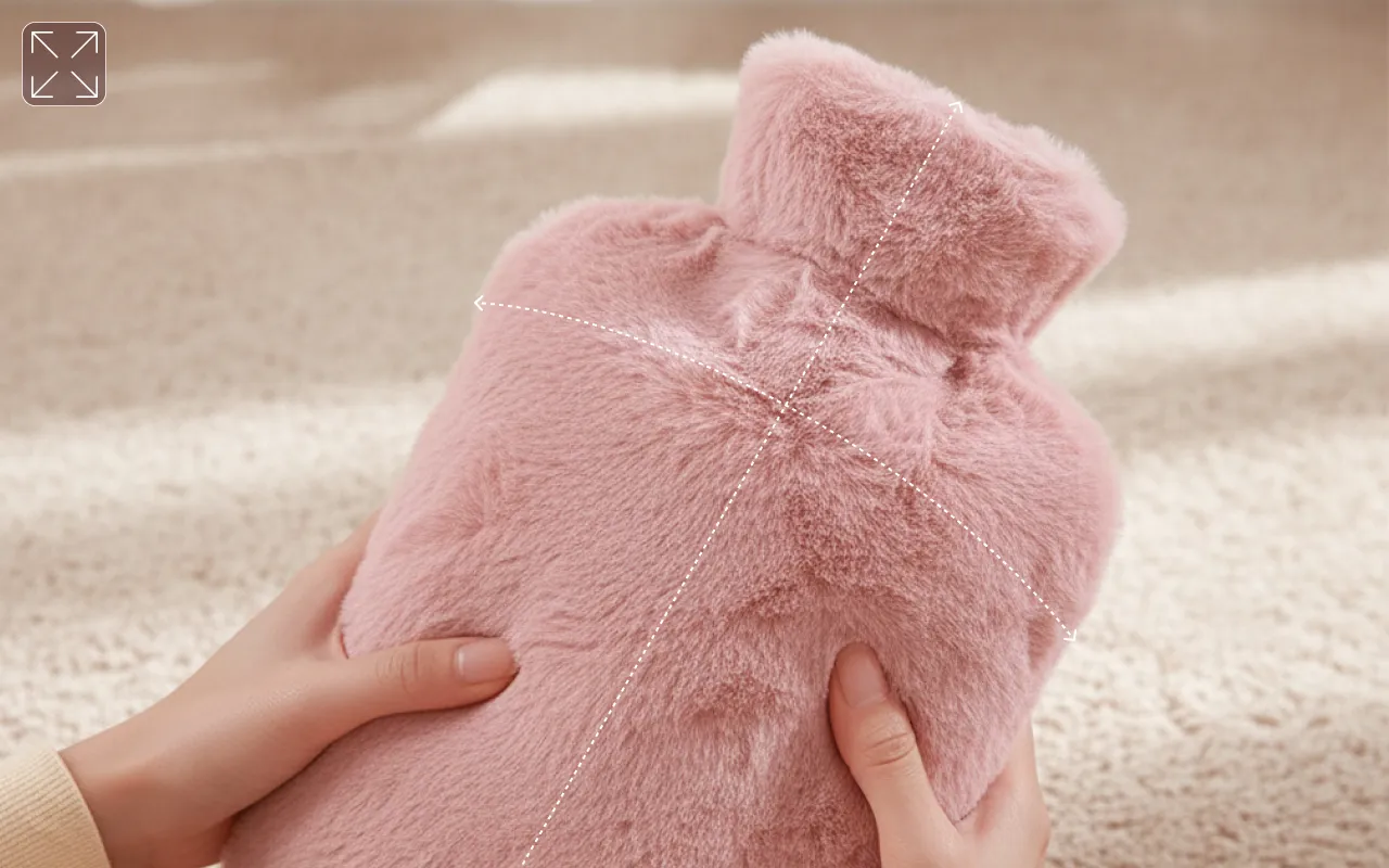 Nossa bolsa de água quente tem um volume de 2000ml. Ela cobre uma área significativa do seu corpo, mantendo você aquecido em noites mais frias.