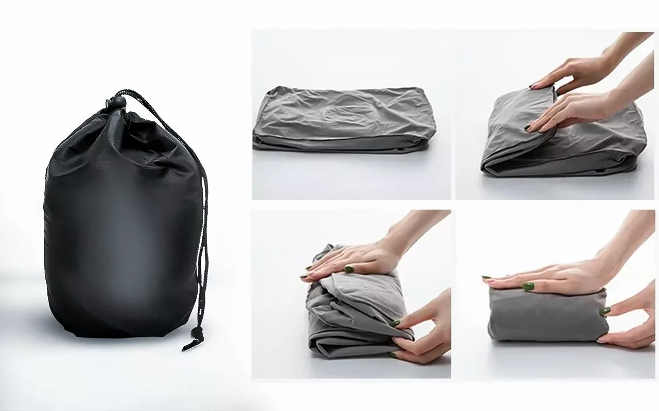 Desinfla facilmente e dobra-se em sua bolsa compacta. Leve-o para qualquer lugar sem adicionar peso ou incômodo extra.
