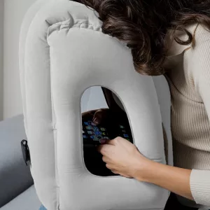 Agora é meu item favorito para viagens de avião. Muito confortável e fácil de ajustar se quero mais macio ou mais firme. Sem mais pescoço duro.