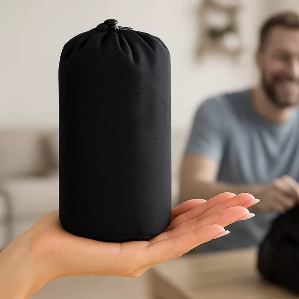 Enche super rápido e consigo deixá-lo tão macio ou firme quanto quero. Material muito macio e limpar é super fácil. Agora não viajo mais sem ele.