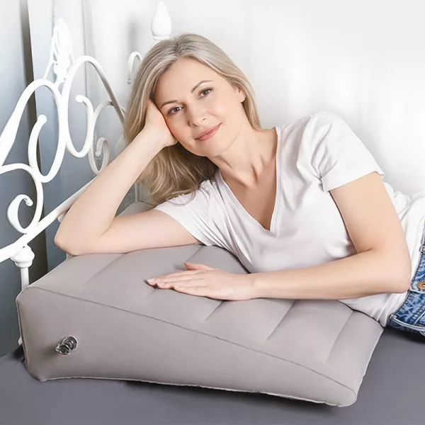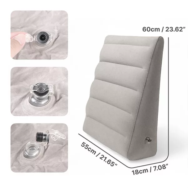 Desfrute de alívio relaxante enquanto lê, dorme ou relaxa em casa. O design compacto cabe facilmente em qualquer bolsa para viagens. Encha com facilidade quando necessário, depois esvazie e guarde rapidamente. O travesseiro em cunha Ortorex ajuda você a se sentir confortável em qualquer lugar.