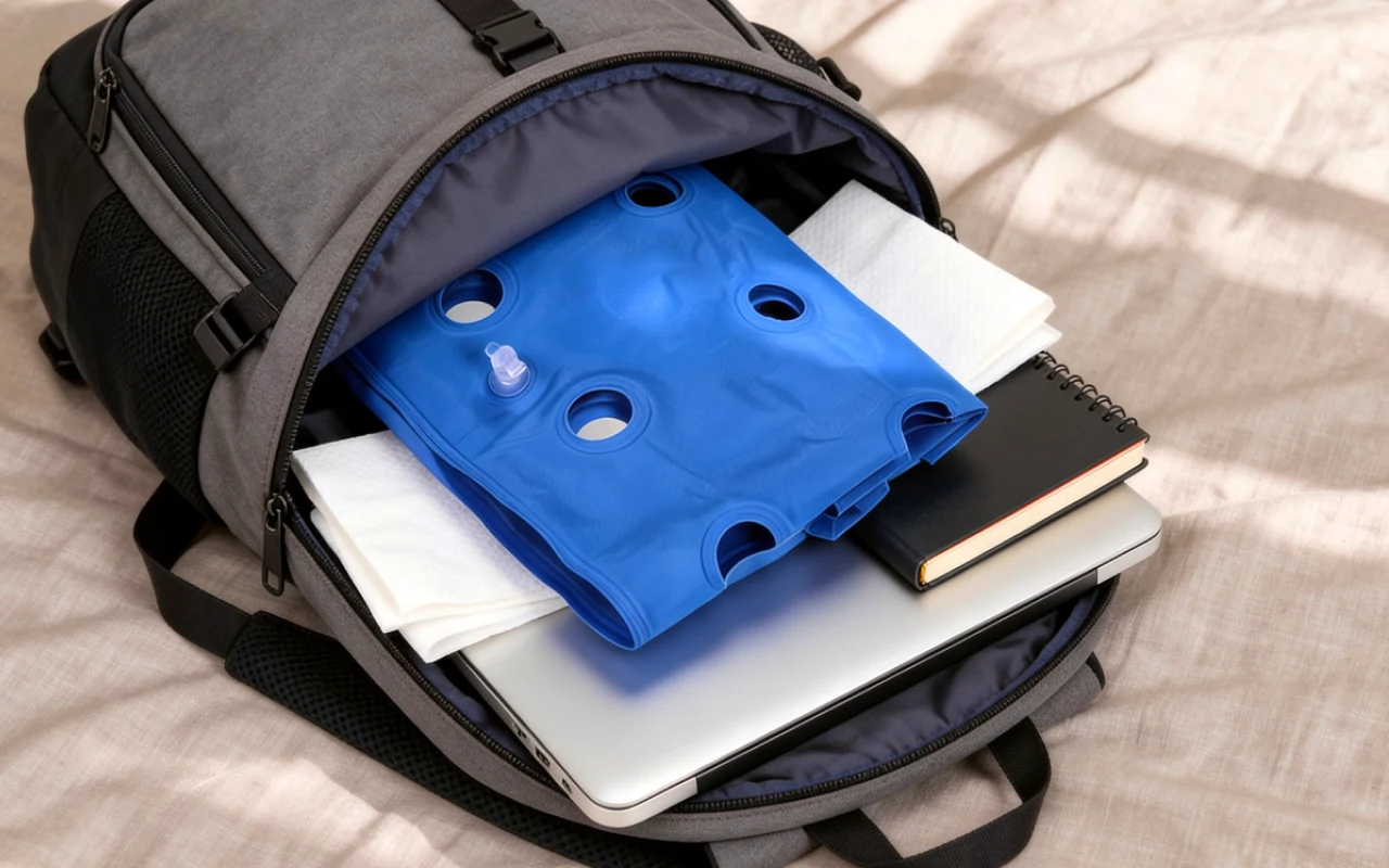 Leve sua almofada Ortorex para qualquer lugar, do escritório às viagens. Esvazie rapidamente para guardar e transporte com facilidade onde precisar.