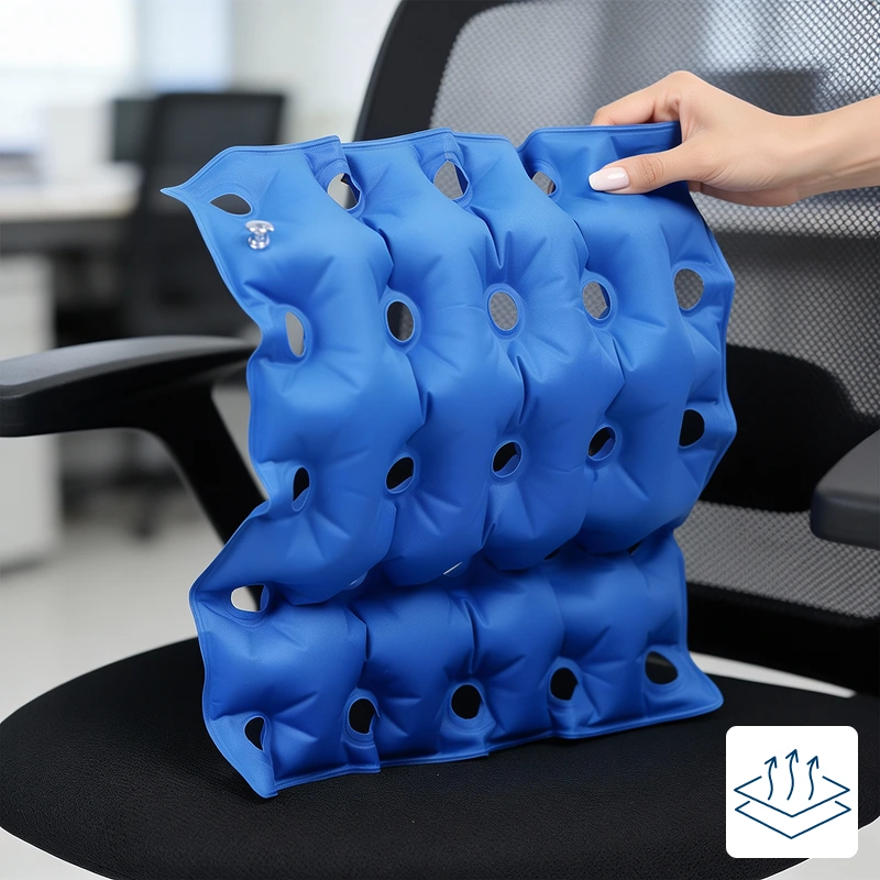 A pressão e a dor desaparecem ao usar este acessório inteligente. Leve e respirável, encaixa perfeitamente em qualquer cadeira. A limpeza leva segundos e o armazenamento exige pouco espaço.