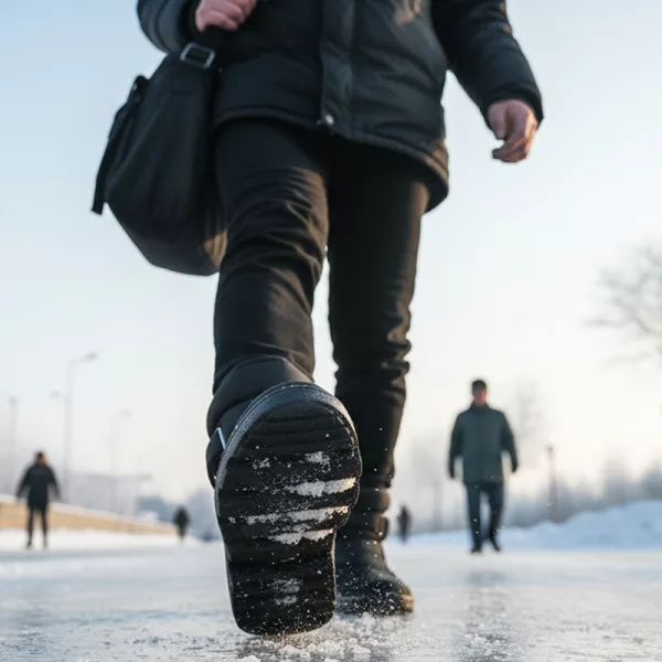 O solado texturizado oferece aderência extra em calçadas geladas. Movimente-se com segurança quando as ruas ficarem escorregadias durante o frio.