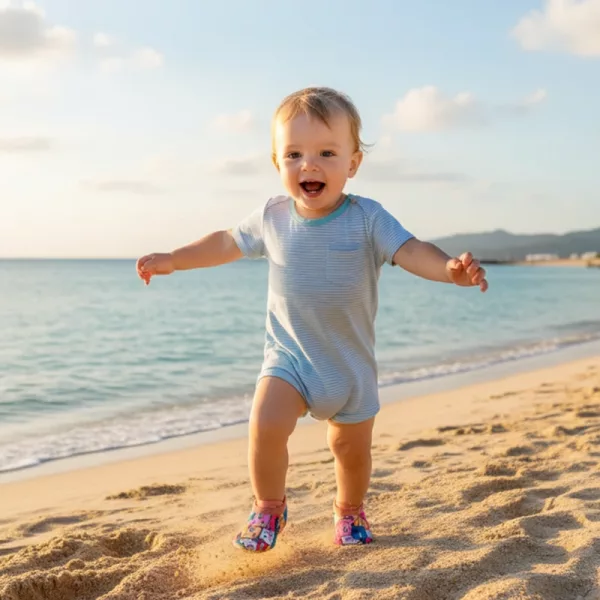 Deixe seu filho brincar, correr e se divertir sem cair com os sapatos de praia Ortorex. O tecido respirável evita o superaquecimento, mesmo nos dias mais quentes de verão. O ajuste firme permanece seguro durante as atividades aquáticas ou no parquinho.