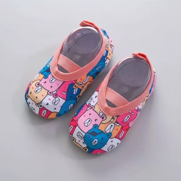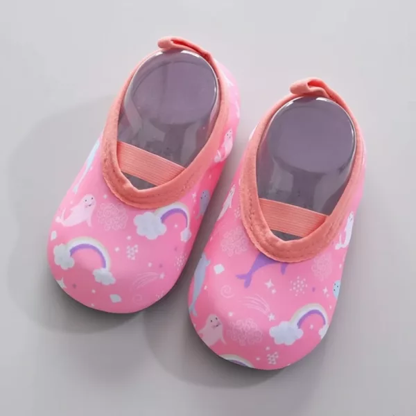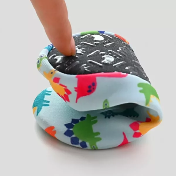 Nossos sapatos aderem firmemente a superfícies molhadas, ajudando as crianças a se manterem firmes nos pés.