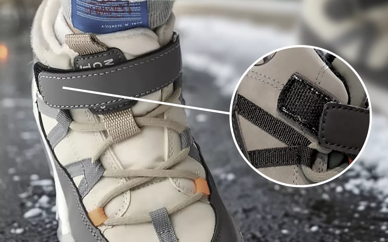 Tiras com fecho de contato tornam o calçar rápido. As crianças colocam os próprios sapatos sozinhas todas as manhãs.
