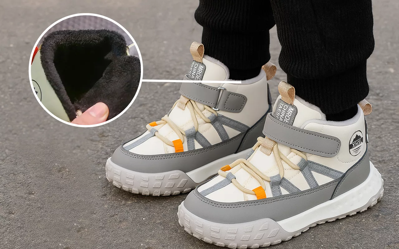 O forro felpudo mantém o calor dentro, bloqueando o frio do inverno. Os pezinhos ficam protegidos do chão gelado o dia todo.