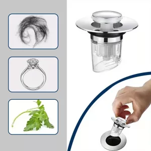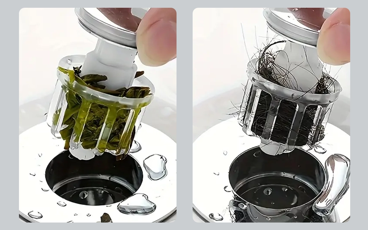 Fico feliz que este pequeno tampão recue tudo, do cabelo às migalhas na pia. Evitou bloqueios no ralo e me faz economizar tempo.